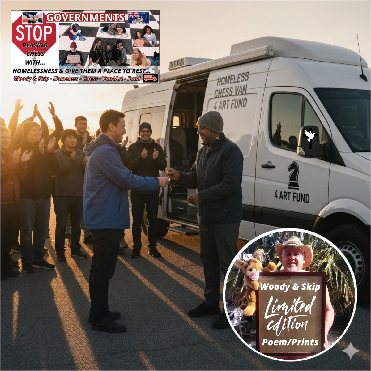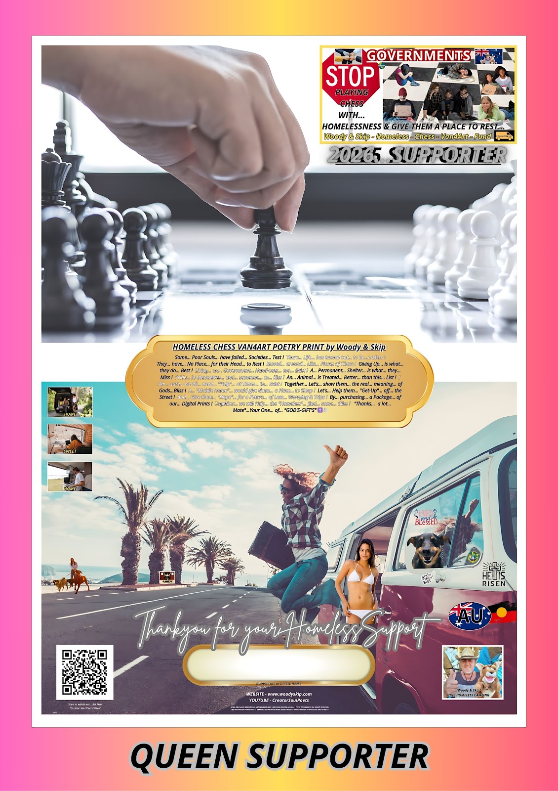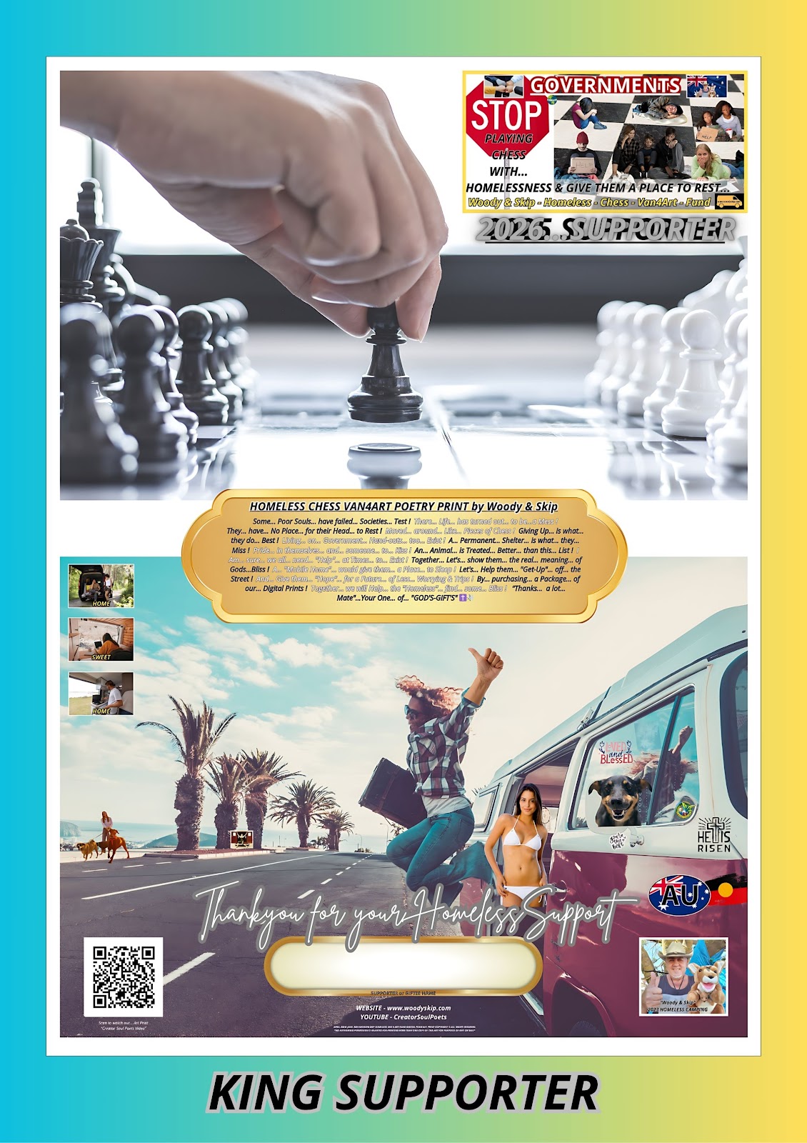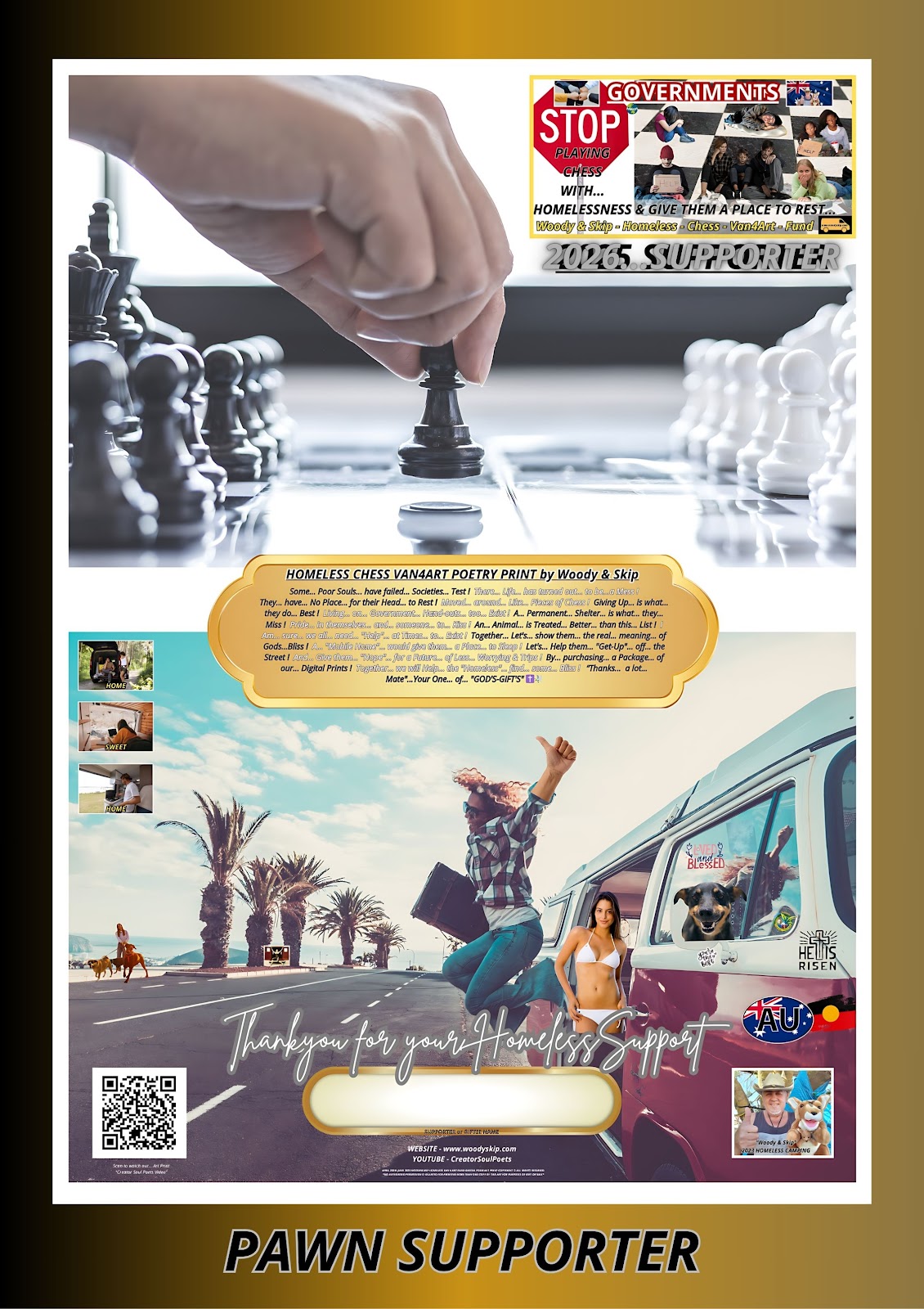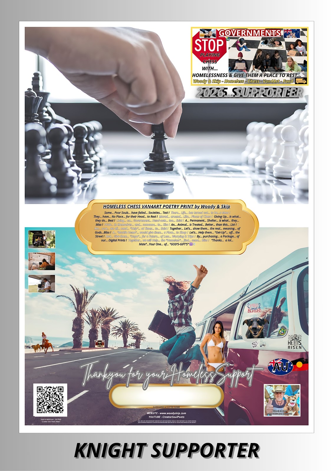 THE HEART BEHIND THE ART... Supporting fundraising with our exclusive digital prints, crafted to inspire and make a meaningful impact Wall Display Gift - Supports Homeless Chess Van4ArtFund - Woody & Skip Poetry Prints.